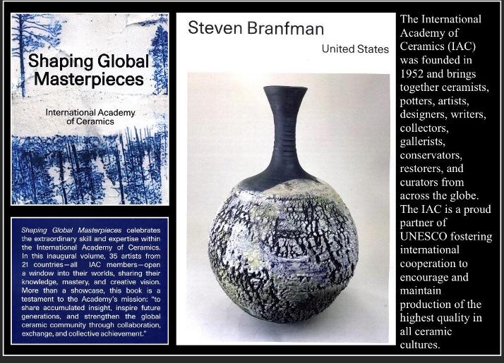 Our Founder and Director, Steven Branfman, has been elected membership in the International Academy Of Ceramics, considered the most prestigious and highly regarded ceramics organization in the world. Click here to learn more about the IAC