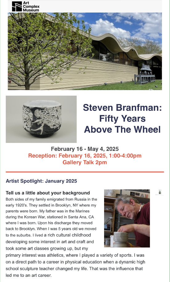 Our Founder and Director, Steven Branfman, has been elected membership in the International Academy Of Ceramics, considered the most prestigious and highly regarded ceramics organization in the world. Click here to learn more about the IAC